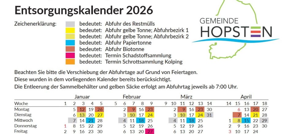 Die Abfuhrtermine erhalten Sie ebenfalls über die HopstenApp, die Abfall-App der EGST sowie dem Familienkalender der Werbegemeinschaft Hopsten.