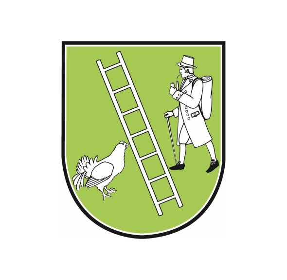 In Grün eine weiße (silberne) schräge Leiter, begleitet vorn von einem weißen (silbernen) nach links blickenden Birkhahn, hinten von einem weißen (silbernen) nach rechts schreitenden Mann im Gehrock, mit Kniebundhosen, Hut und schwarzen Schnallenschuhen, auf dem Rücken eine weiße (silberne) Kiepe, in der Rechten ein weißer (silberner) Stock, in der Linken eine weiße (silberne) Pfeife.